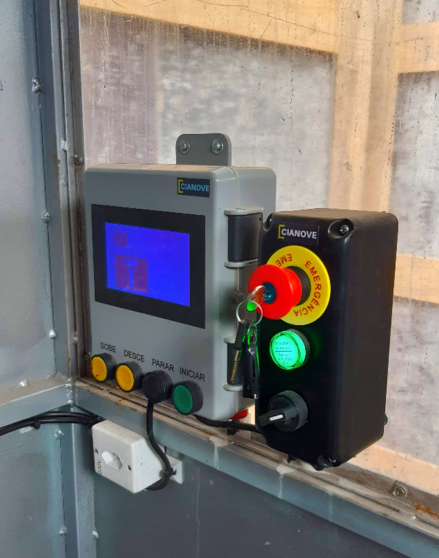 - De fácil instalação, pode ser integrado a qualquer elevador de obra, nacional ou importado;